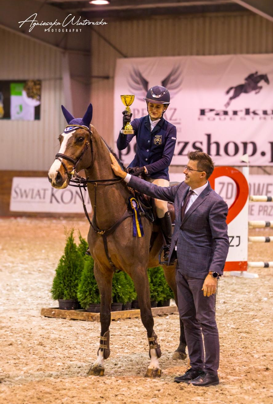 Young rider Hania Osekia and former ESHI horse Leroy take the win in the 1.35 finals in Poland. Congratulations !!