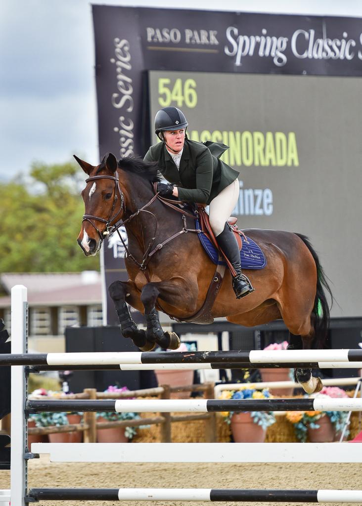 Olivia Stephenson and Diester Z winning the U25 Grand Prix at MarBill Hill.
