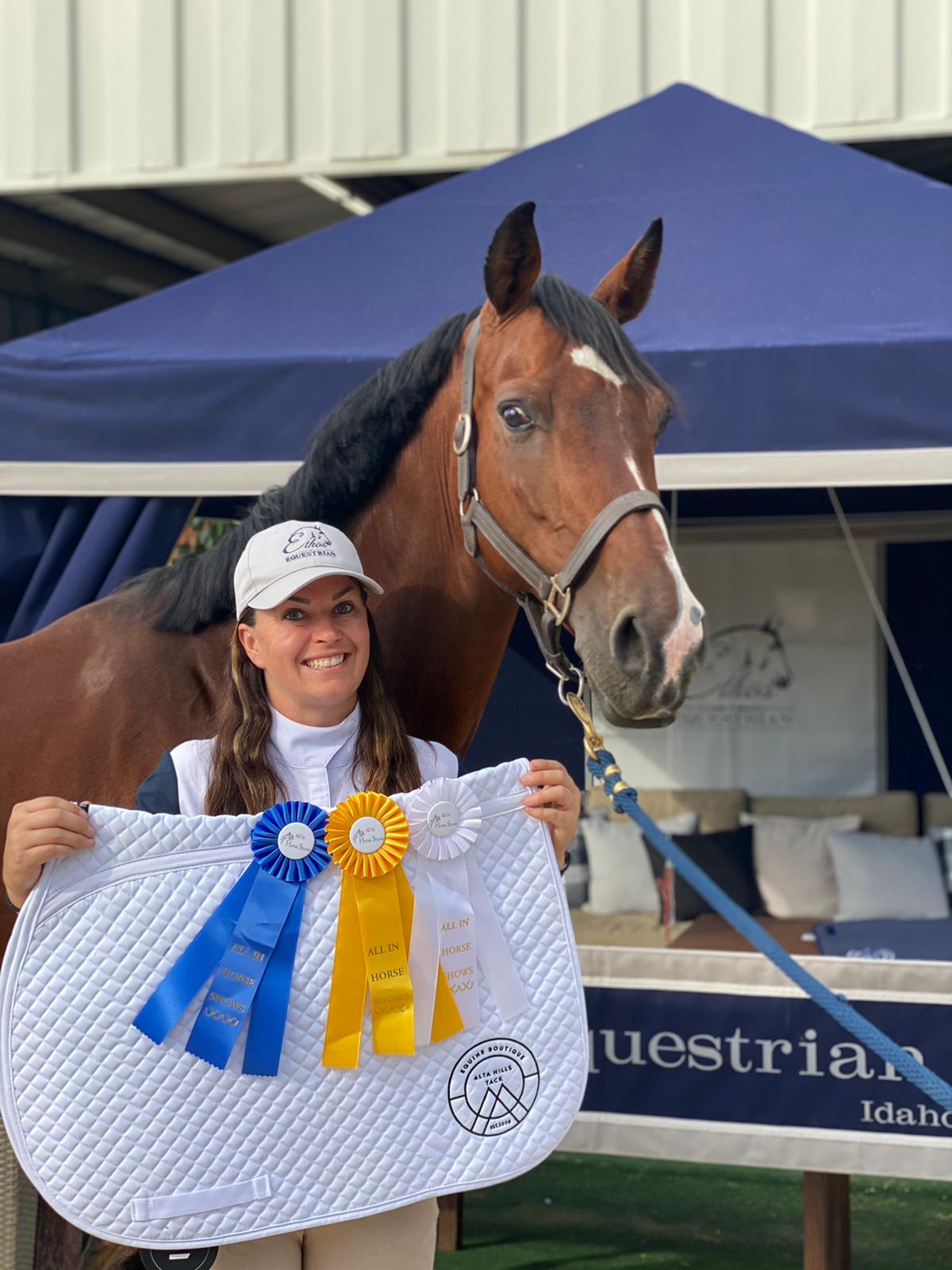 Sold horse Noblesse has been bringing home plenty of Champion ribbons with his owner Lacey! We are thrilled for the pair!