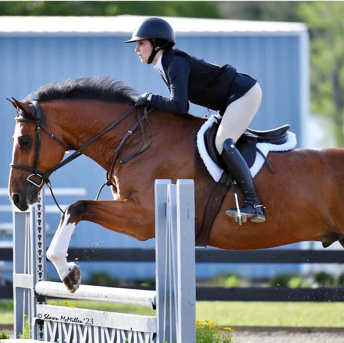Sold horse Oreo has been foot perfect since landing as a 4 year old and is doing wonderful with his young rider and Tulip Pond in GA!