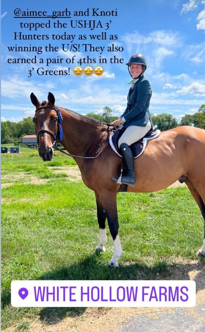 Sold horse Knotorious J, found as a 3yo by ESHI owner Jessica, served as her personal horse while being developed, and is now moving up the Hunter divisions with Aimee Garb. A real ESHI favorite.