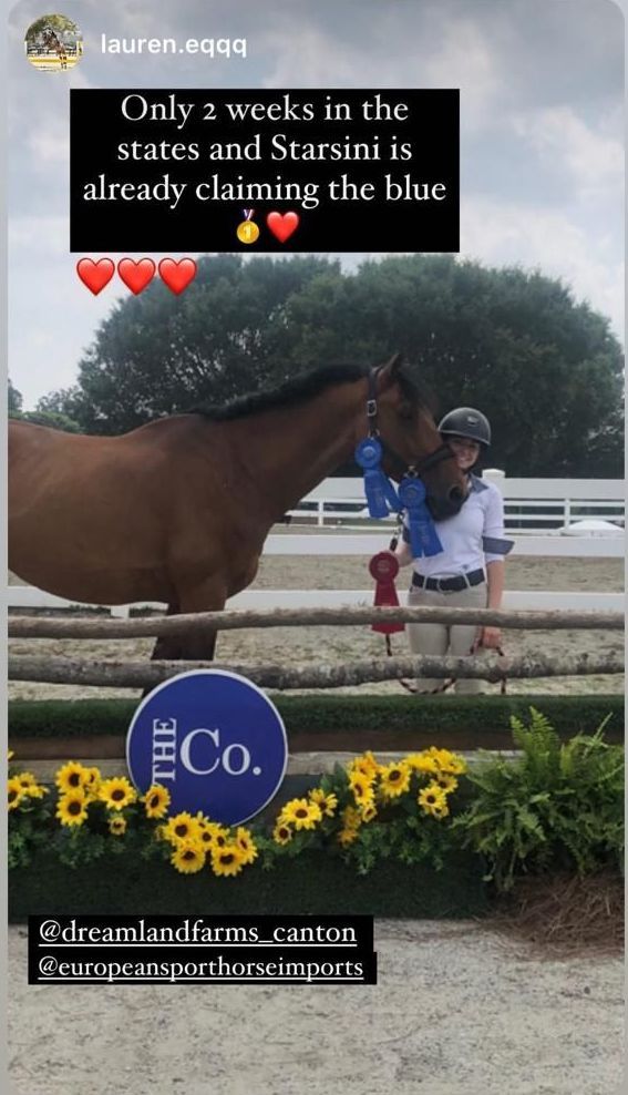 Top ribbons in so many divisions for sold horse STARSINI just two weeks after landing! Congratulations to his rider!